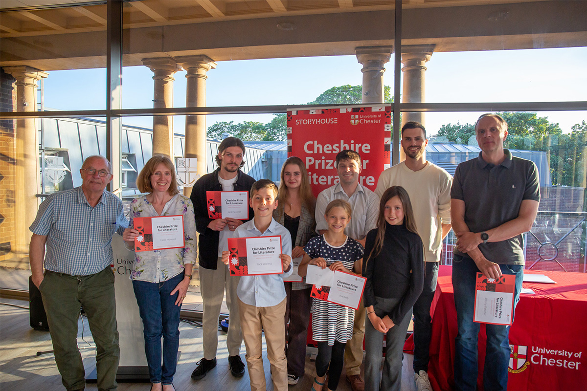 Winners and shortlisted entrants join Dr Harry Parkin at the Cheshire Prize for Literature 2022/23 awards evening.
