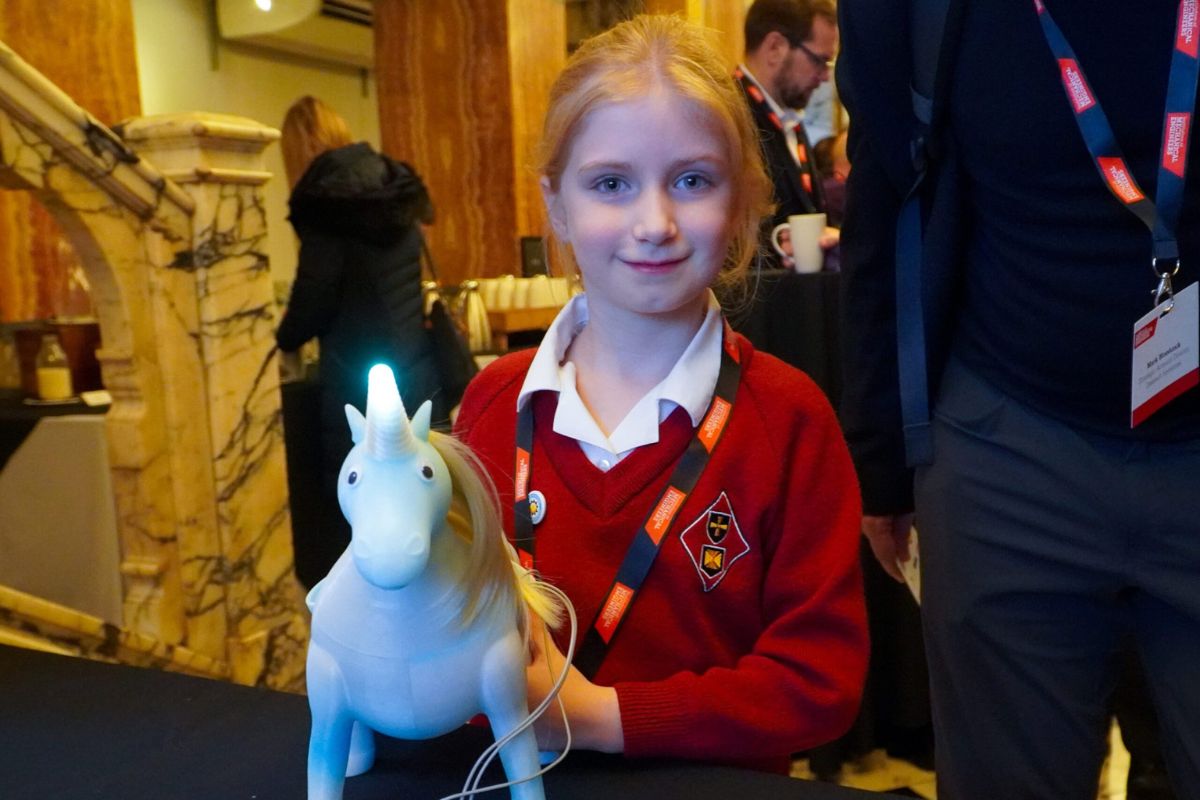 Francesca Mobberley, from Dame Allan’s Junior School in Newcastle, first wowed a panel of engineering experts in 2022 with her Unicorn Health Bot (Unibot), which is designed to keep children calm in hospital and offer a pleasant distraction, while using electronic sensors in its horn to read important information, including heart rate, oxygen levels and temperature.
