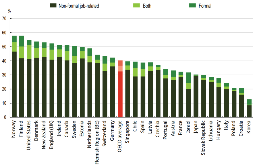 Note: Adults aged 25-65, formal and non-formal job-related adult learning in the 12 months prior to the survey. OECD, (2024) Survey of Adult Skills (PIAAC) (2023) Database,