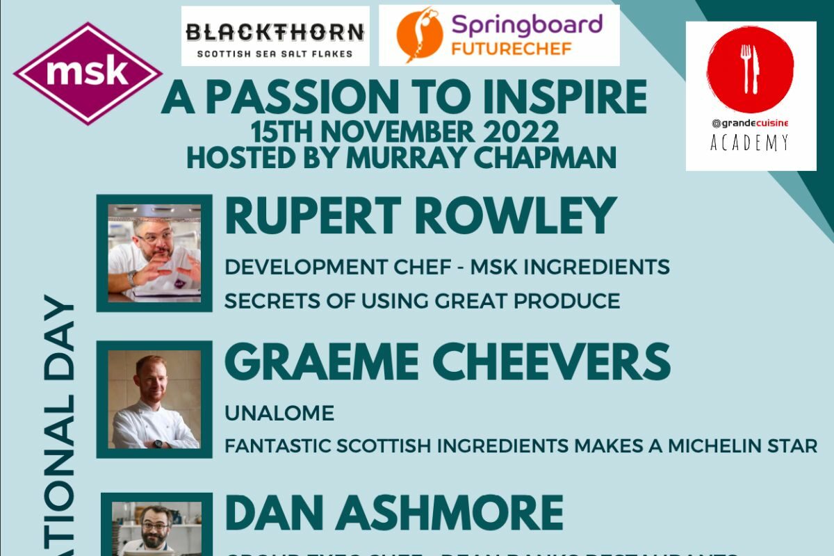 A new way of Inspiring – learning and meeting some wonderful people Putting the day together – It is such an Honour – Culinary Legend Willie Pike – Pastry Superstar Ross Sneddon and Michelin Star Chefs – Graeme Cheevers – Rupert Rowley and Dan Ashmore