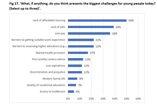 Young Britons also feel a lack of affordable housing, a constrained jobs market and poor pay conditions are the biggest issues facing their generation.