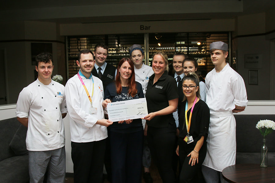 The Hospitality & Catering department from East Sussex College Eastbourne presented a cheque to Raystede Centre for Animal Welfare following a successful year of fundraising.