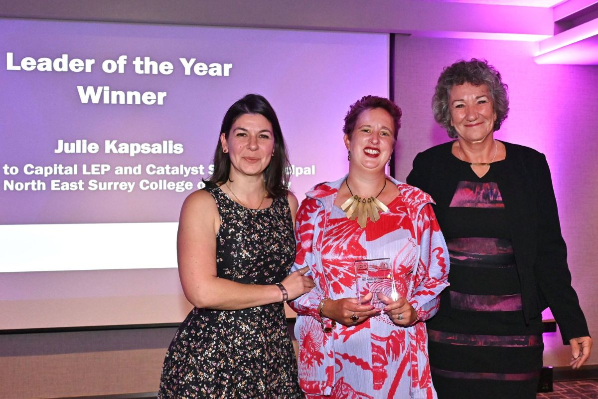 Julie Kapsalis, Principal and CEO of the North East Surrey College of Technology (Nescot) and Chair of the Coast to Capital LEP and Catalyst South, has been named Leader of the Year at the Institute of Economic Development (IED) Annual Awards 2023.