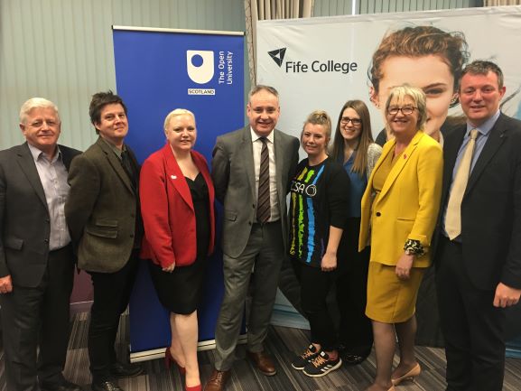 At the event the Minister was welcomed by Hugh Hall, Principal of Fife College and Susan Stewart, Director of the OU in Scotland.