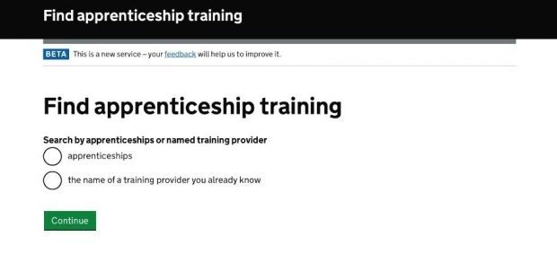 This service is for people who want to become apprentices. They can search by job type, or geographically, or by industry sector.
