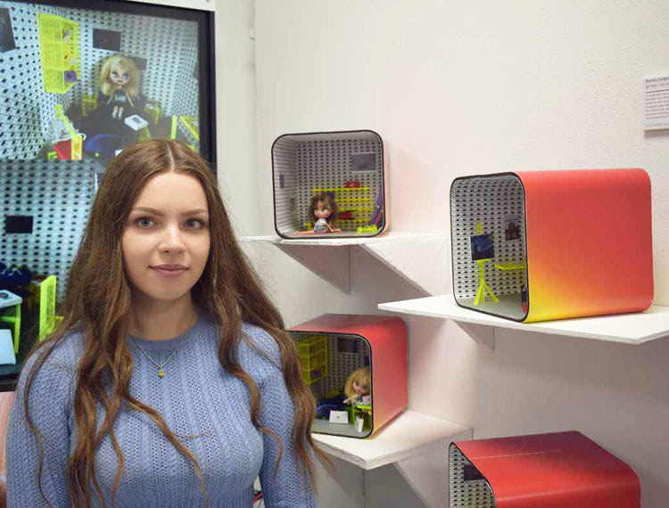 Some of the work included: Raminta Smigelskaite’s ‘I am watching you’ installation (pictured) which explored the impact of social media on young people. She used the Instagram logo as inspiration for her boxes which explored how platforms of this kind can shape our self-identities through their emphasis on presenting ourselves in a socially acceptable way.