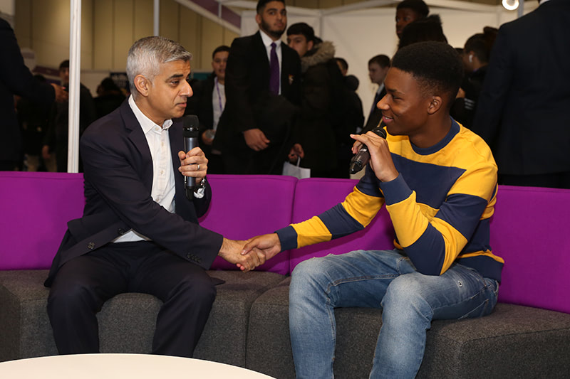 Rap sensation Romzy interviews Sadiq Khan at London’s biggest skills fair