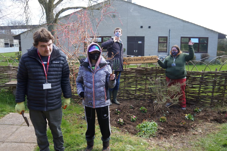 On Tuesday 23rd March, staff and students from the Supported Learning department began working on the gardens, planting bedding plants and bulbs after tidying and preparing the area. Following the one-minute silence at midday, the gardens were officially named by the placement of a plaque made by CRC carpentry students.