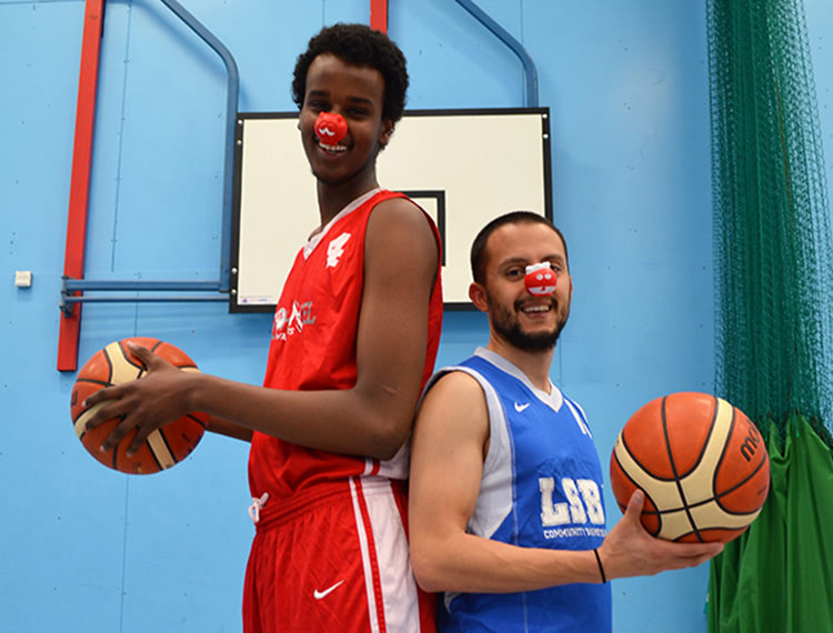 A giant Somalian student is among a team of basketball players taking part in a match against college staff for Comic Relief.