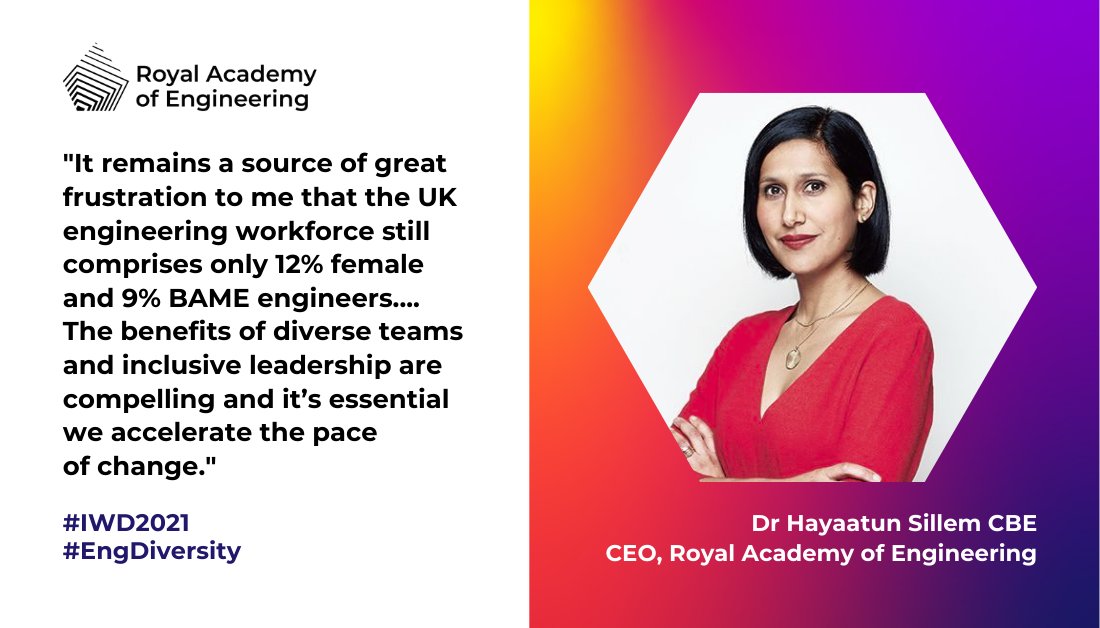 #InternationalWomensDay #IWD2021 – @RAEngNews Chief Executive Dr Hayaatun Sillem CBE will tonight be honoured with a Suffrage Science Award from the MRC London Institute of Medical Sciences for her leadership in promoting diversity and inclusion in the engineering profession. Dr Sillem will join 11 other distinguished awardees at an online celebration on Monday 8 March 2021, which marks both International Women’s Day and the tenth anniversary of the awards.