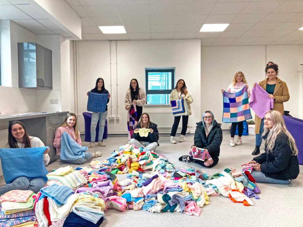 Second year Health and Social Care student Holly Barclay had her address on the poster that went viral asking for donations, resulting in a few days of her family home being swamped with new knitted products.